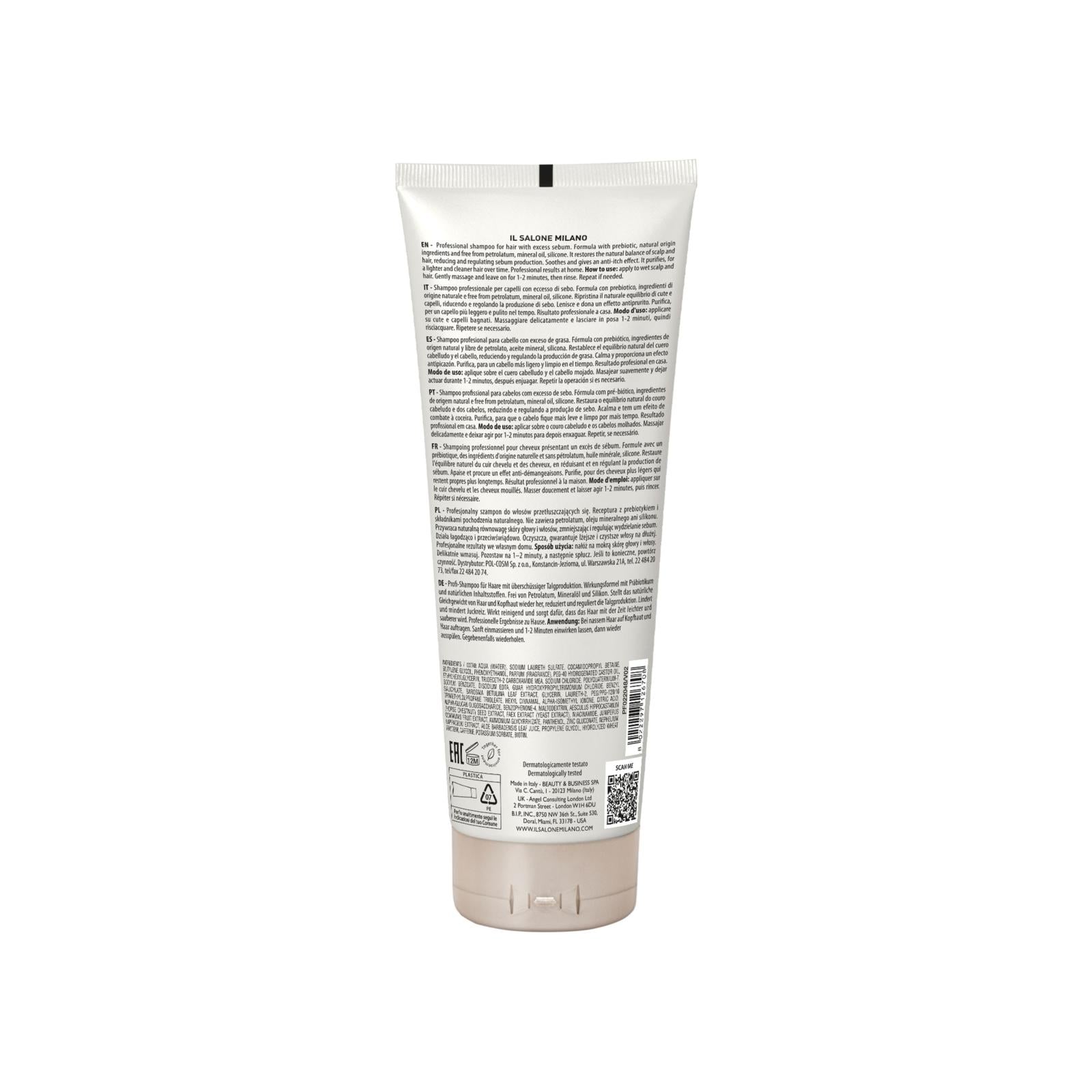 Shampoo professionale per capelli con eccesso di sebo.