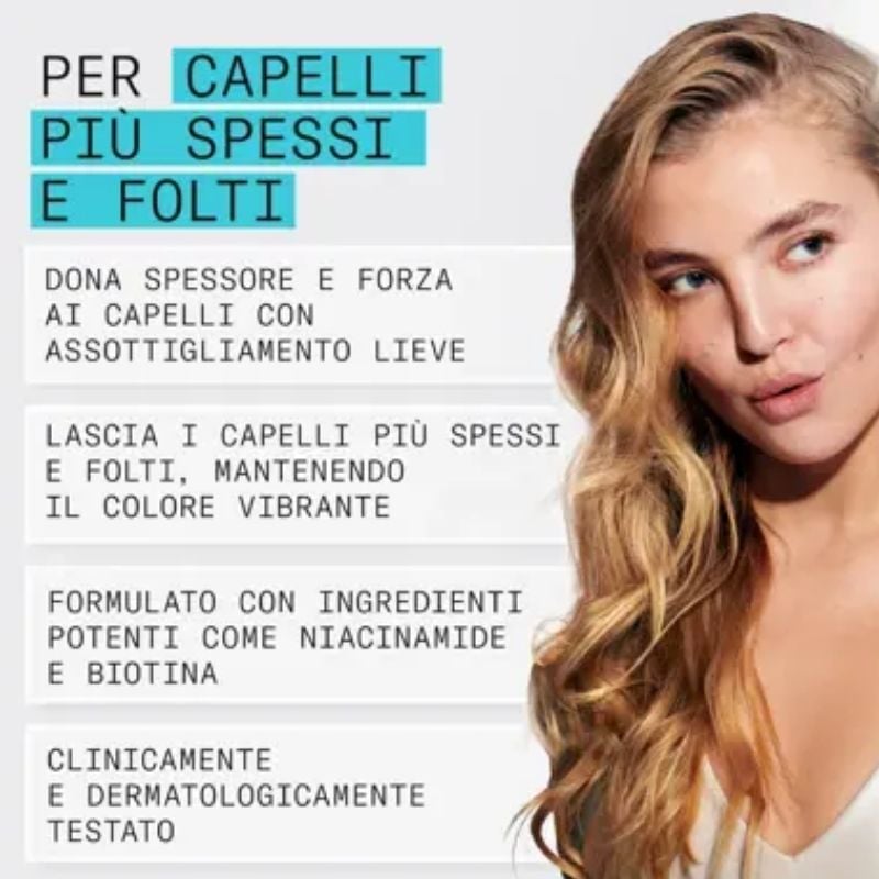 Kit di prodotti per contrastare l'assottigliamento lieve dei capelli colorati.